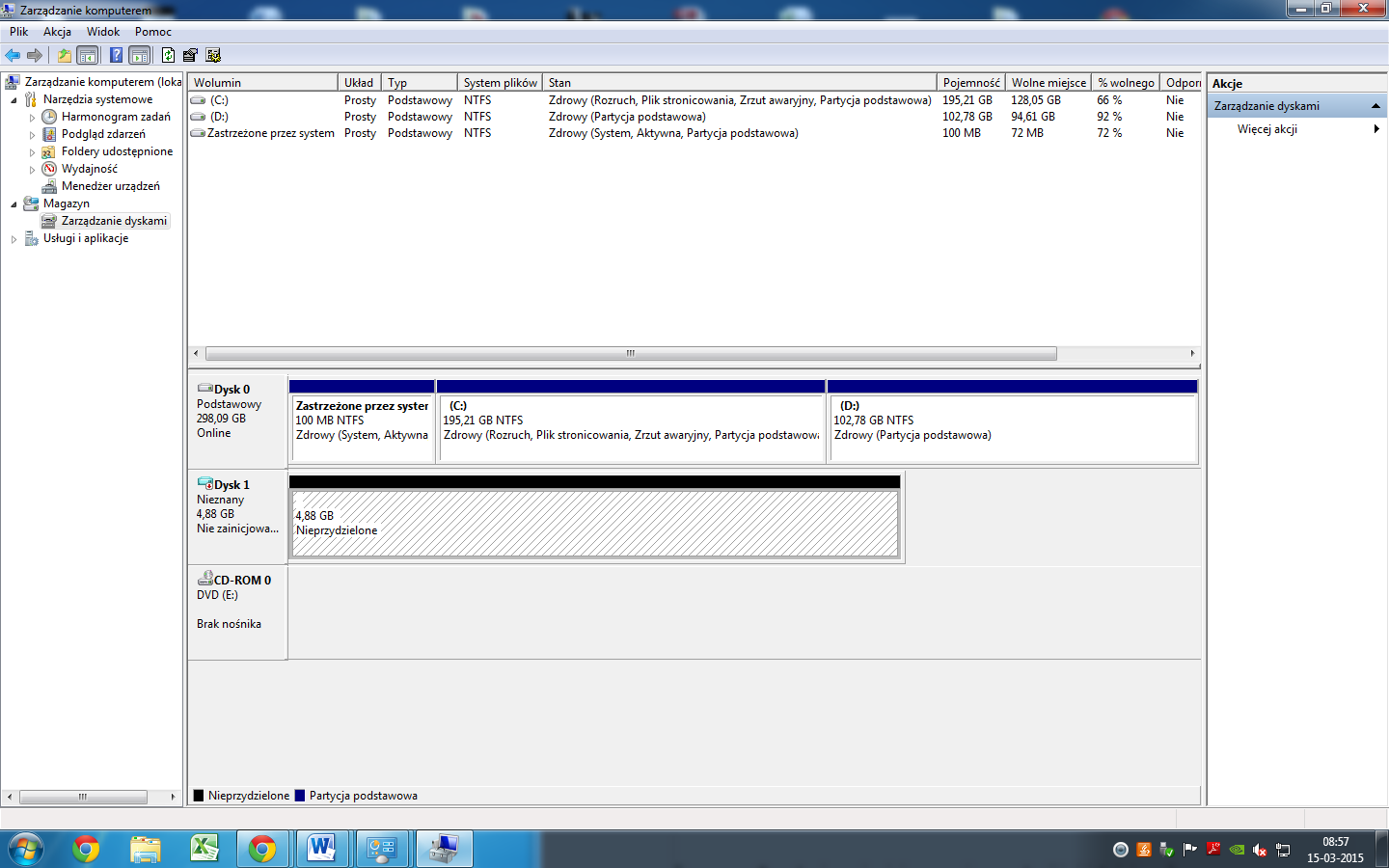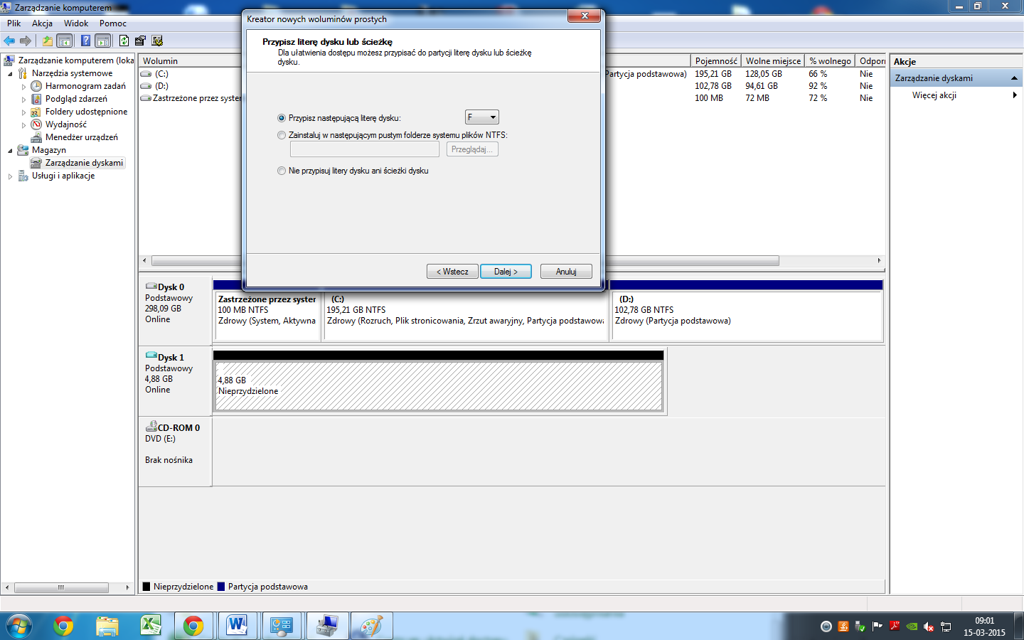 Utwórz nowy wolumin prosty oraz przypisz dowolną literę ( E:) do wolnego obszaru na dysku.